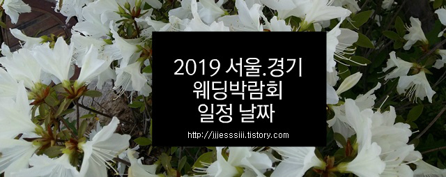 2019 서울.경기 웨딩박람회(결혼박람회) 일정 날짜 입니다. 전시.박람회 일정을 정리하다가 웨딩박람회만 따로 모아서 올립니다. 봄, 가을이 결혼시즌이라고 하죠. 결혼박람회에서 좋은 정보 얻어서 결혼준비가 잘 되었으면 좋겠네요.