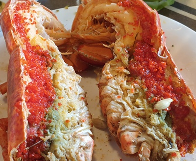 30분정도 일찍 여유있게 도착해서 배부르게 먹을려고 했는데 예약시간보다 20분정도 늦게 도착했다. 그래도 입장시켜 줘서 입장할 수 있었다. 입장하기 전 손소독부터 하고 QR등 방문기록남기는 것부터 해야했다. 자리에 앉기전 직원이 식당 내부를 한바퀴 돌면서 어떤 식으로 음식을 주문해서 먹을 수 있고 등등 안내해줬다. 코로나19로 인한 안전한 식사예절이랄까 뭐 그런 인상을 받았다. 식사 전 안내가 끝나고 얼른 자리에 앉았다. 기본으로 랍스타 한접시, 그릴고기, 해산물 등이 서비스 되었다. 얼른 먹고 더 많이 먹어야지 ,,,,잔뜩 욕심을 부렸다.
