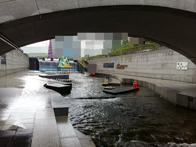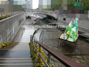 ”소원 동전 던지는 곳”에는 동전이 소복이 쌓여있습니다. ”광통교”의 오래된 석축 색깔이 시간을 말해주는 청계천, 봄비가 조금씩 오는 날도 아름다웠습니다.