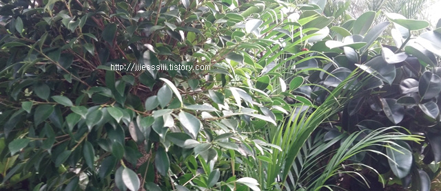 이름을 다 알 수 없는 꽃, 나무들이 줄을 지어 진열되어 있습니다. 공기정화 기능이 있다는, 미세먼지에 좋다고 써있는, 커피향이 난다는, 수생식물, 등등 종류가 다양합니다.