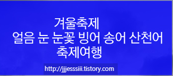 하얀 눈이 펑펑 내리고 차가운 겨울 날씨에 얼음이 꽁꽁 얼면,,, 겨울이 가져다주는 축제로,, 청평 설빙 송어 빙어 축제. 청평 얼음꽃 축제. 가평 자라섬 씽씽축제. 물 맑은 양평 빙어축제. 안성 빙어축제. 파주 송어 축제. 강화도 빙어, 송어 축제. 얼음나라 화천 산천어축제. 태백산 눈축제. [유망축제] 평창 송어축제. 홍천강 꽁꽁 축제. 철원 한탄강 얼음 트레킹. 지리산 남원 바래봉 눈꽃축제. 칠갑산 얼음분수 축제 등, 겨울이 가져다주는 축제로 여행을 떠나봅니다.