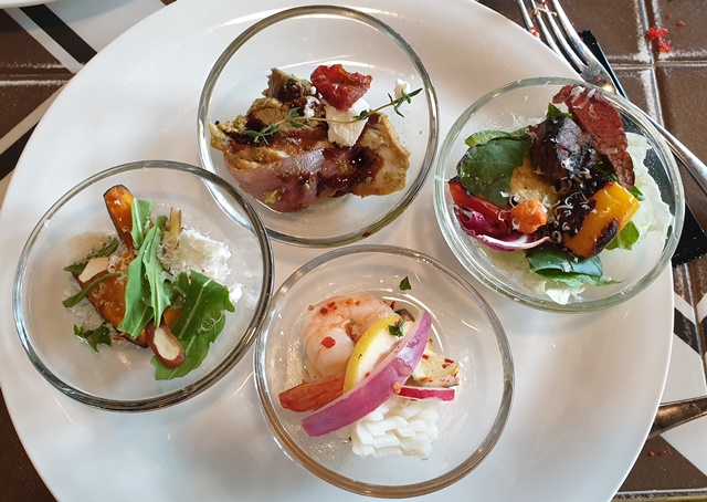 30분정도 일찍 여유있게 도착해서 배부르게 먹을려고 했는데 예약시간보다 20분정도 늦게 도착했다. 그래도 입장시켜 줘서 입장할 수 있었다. 입장하기 전 손소독부터 하고 QR등 방문기록남기는 것부터 해야했다. 자리에 앉기전 직원이 식당 내부를 한바퀴 돌면서 어떤 식으로 음식을 주문해서 먹을 수 있고 등등 안내해줬다. 코로나19로 인한 안전한 식사예절이랄까 뭐 그런 인상을 받았다. 식사 전 안내가 끝나고 얼른 자리에 앉았다. 기본으로 랍스타 한접시, 그릴고기, 해산물 등이 서비스 되었다. 얼른 먹고 더 많이 먹어야지 ,,,,잔뜩 욕심을 부렸다.